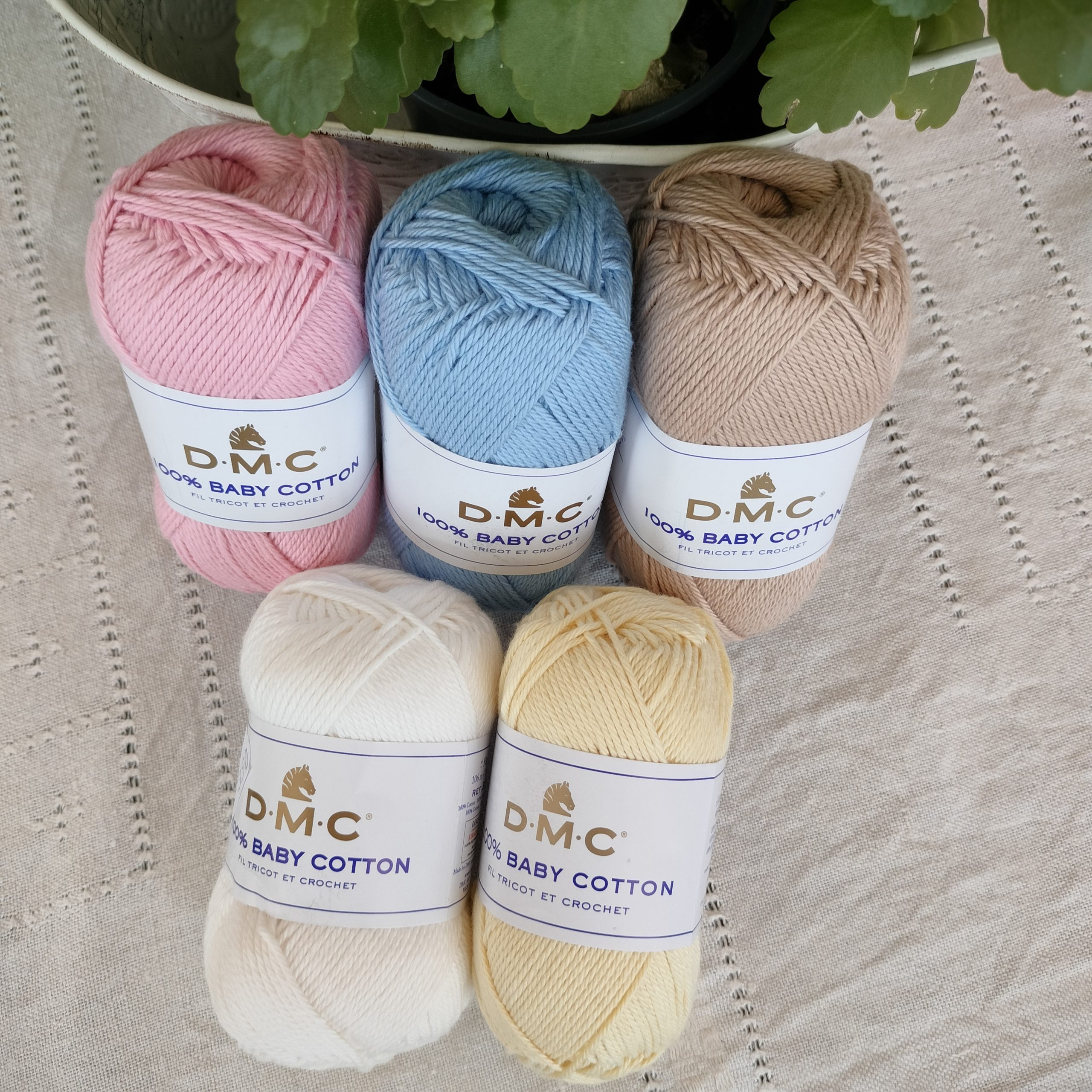 D.M.C Baby cotton merseroimaton pehmeä puuvillalanka, joka sopii hyvin kaikenlaisiin kesäneuleisiin. Nimensä mukaisesti se sopii erittäin hyvin myös vauvaneuleisiin.