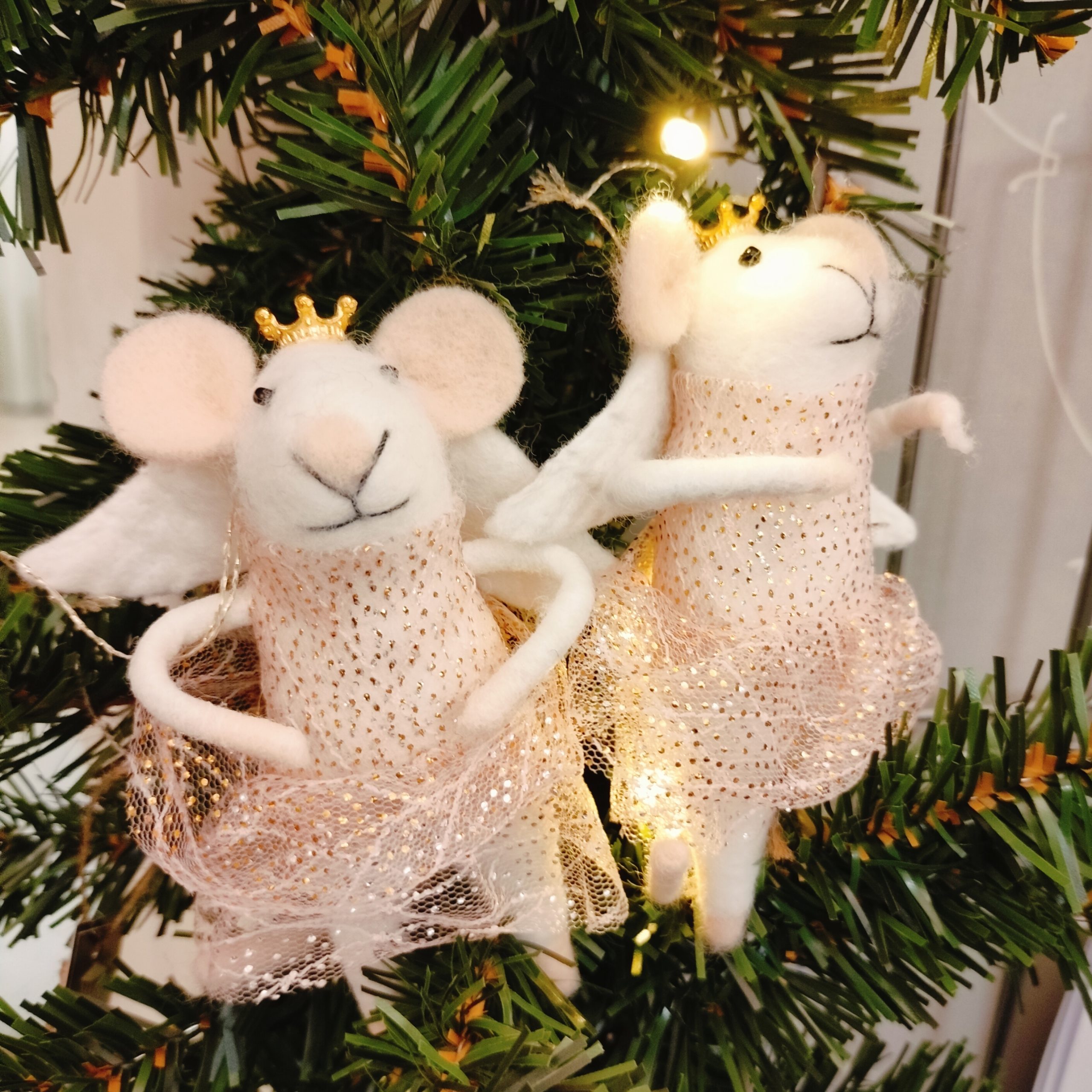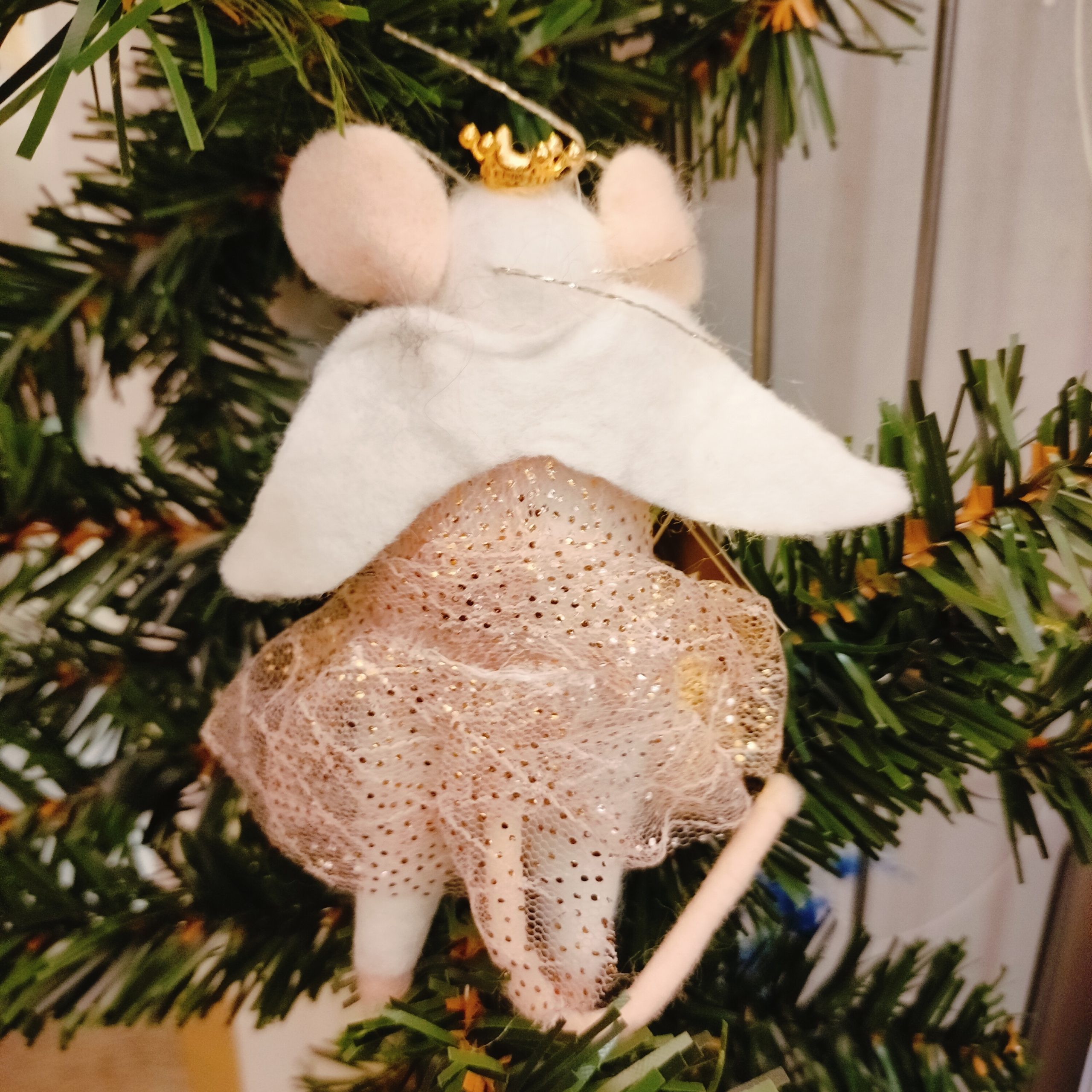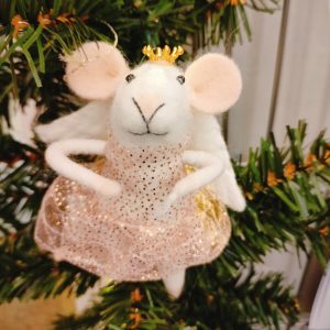 Suloinen huovutettu keijuhiiri sopii koristeeksi vaikka joulukuuseen. Keijun korkeus 10 cm.