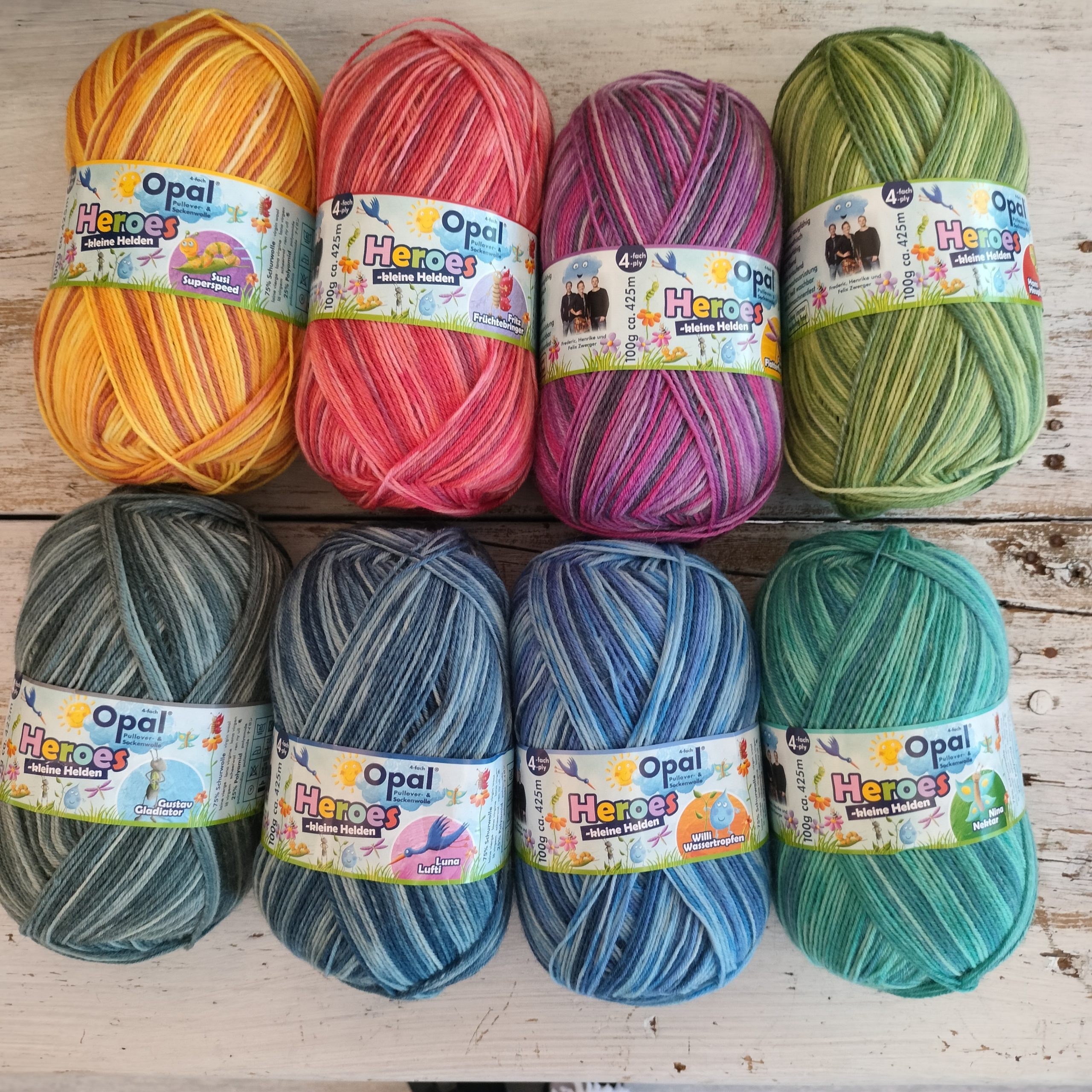 Heroes-lajitelman kirjava 4-säikeinen Opal on ohut ja laadukas neulelanka. Langasta neuloutuu kirjoneuletta mukeileva kuvio sukkiin. Kuvion lopputulos riippuu neuleen leveydestä.