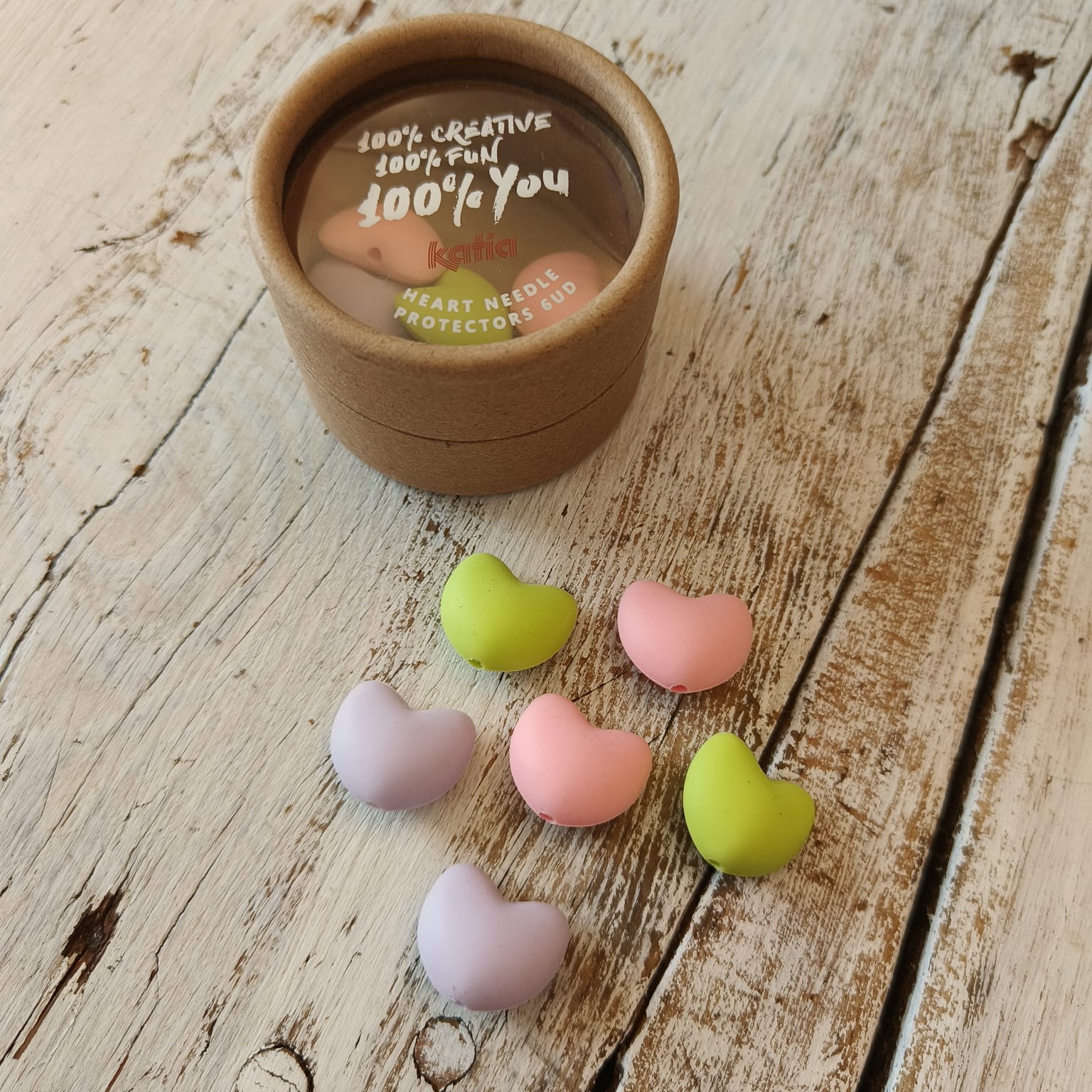 Pastelliset sydämenmuotoiset puikkostopparit. Nyt ei silmukat karkaa puikoilta, kun laitat nämä suloisuudet puikon päihin.