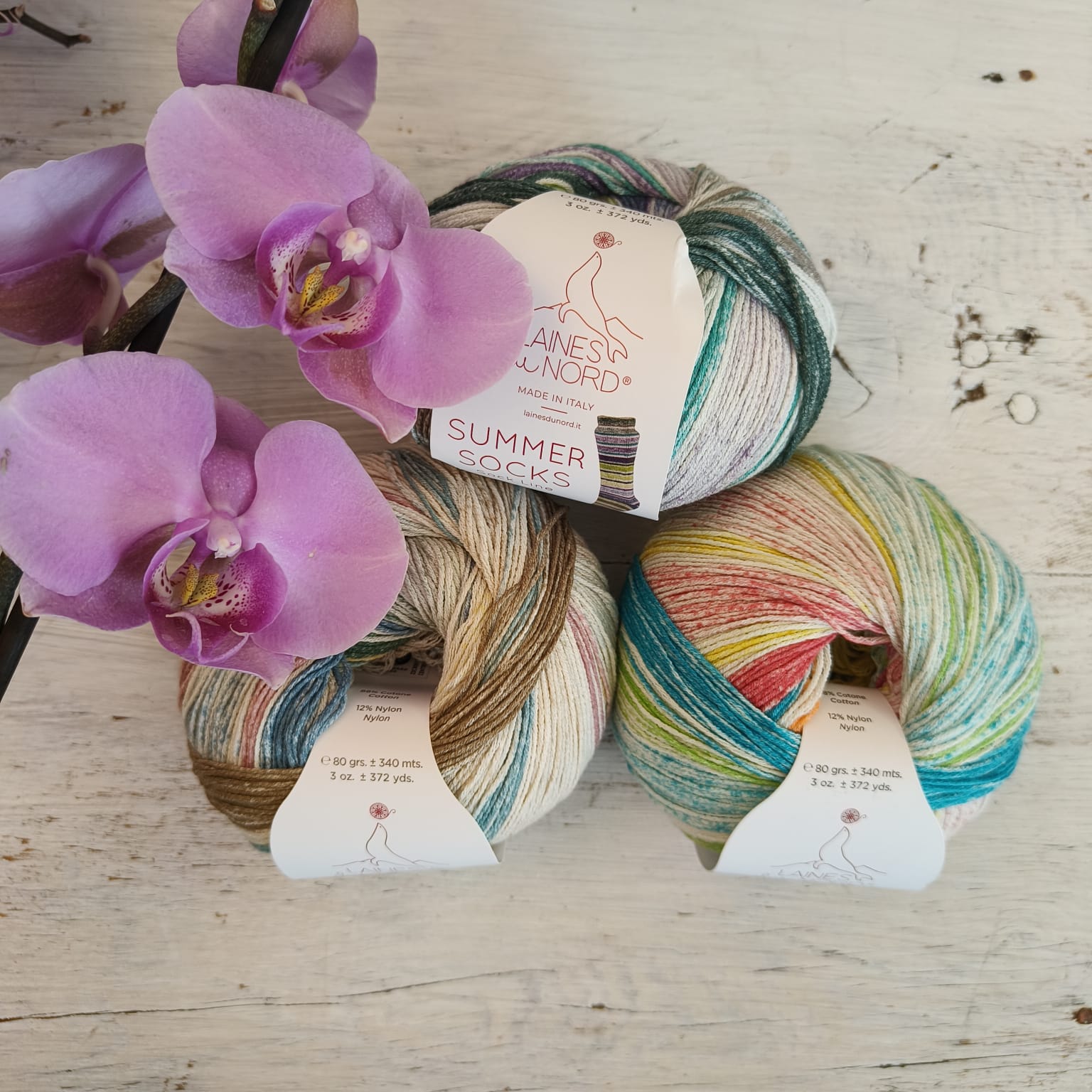 Laines duNord Summer Socks on laadukas ja kestävä puuvillasukkalanka, joka sopii erityisesti kesäisiin sukkiin.